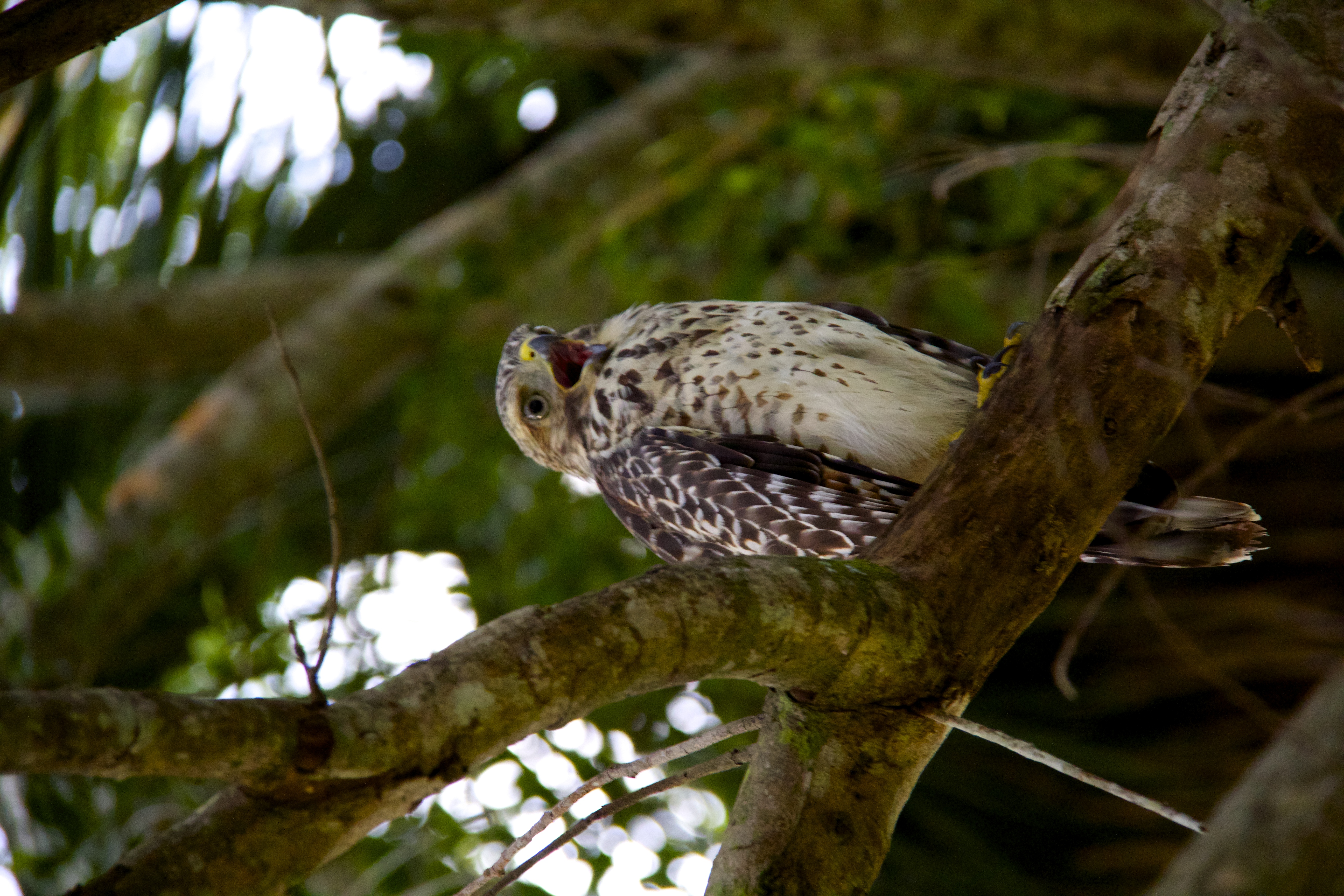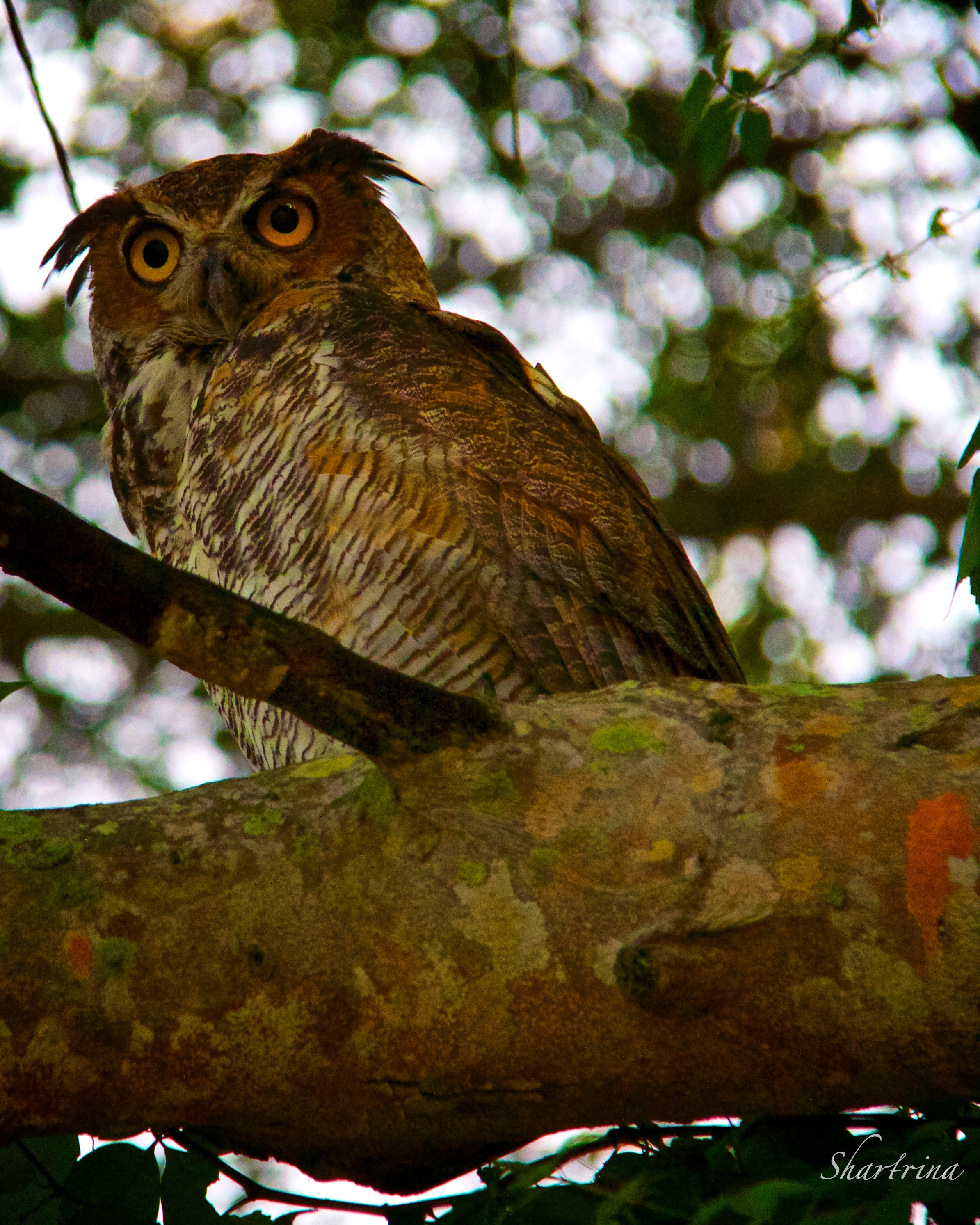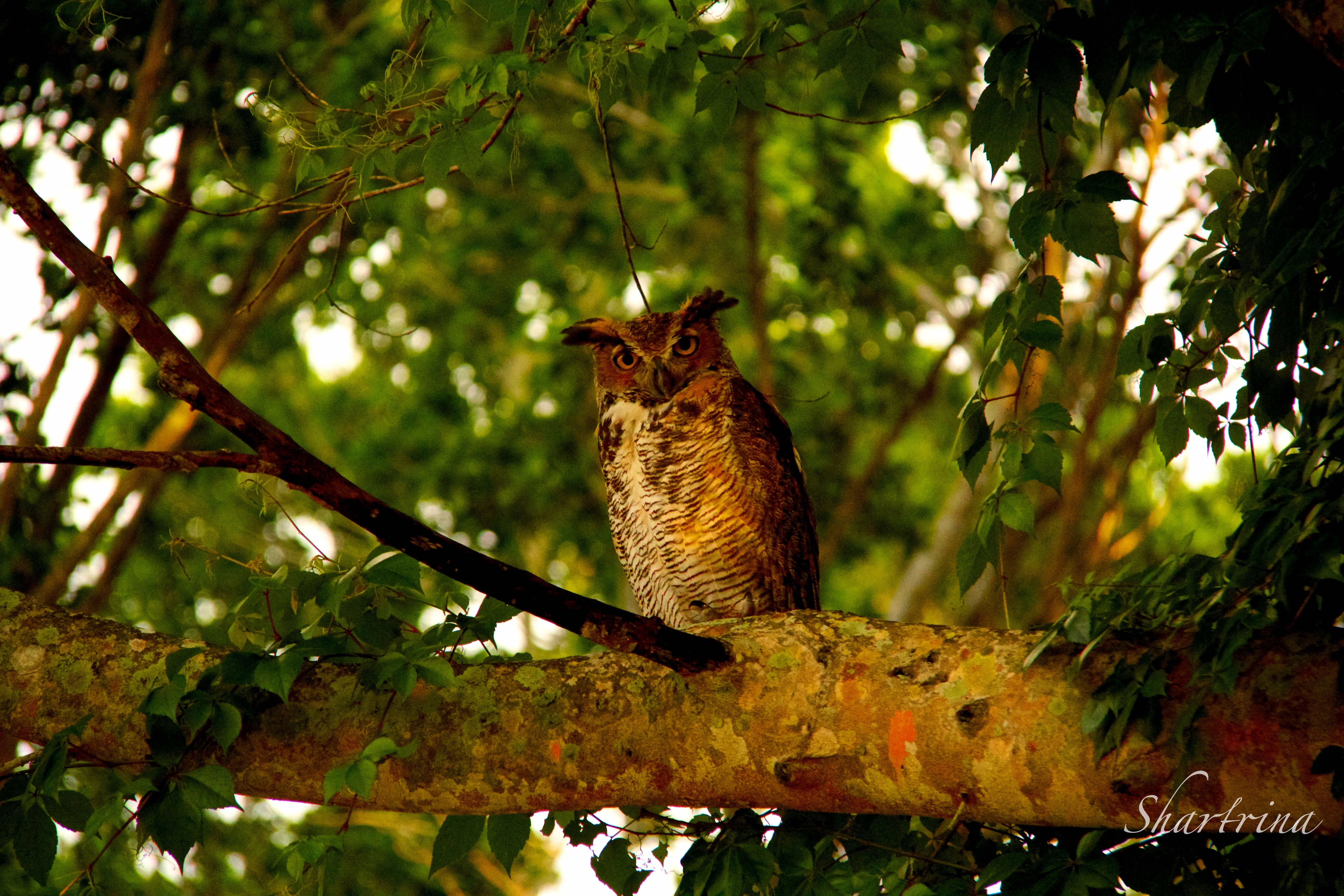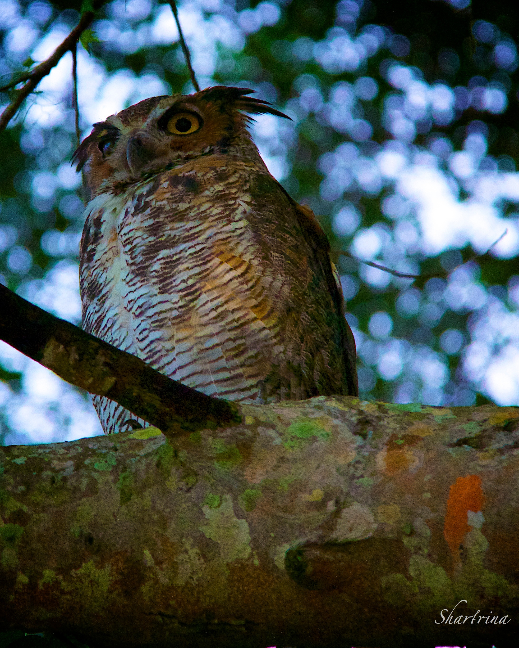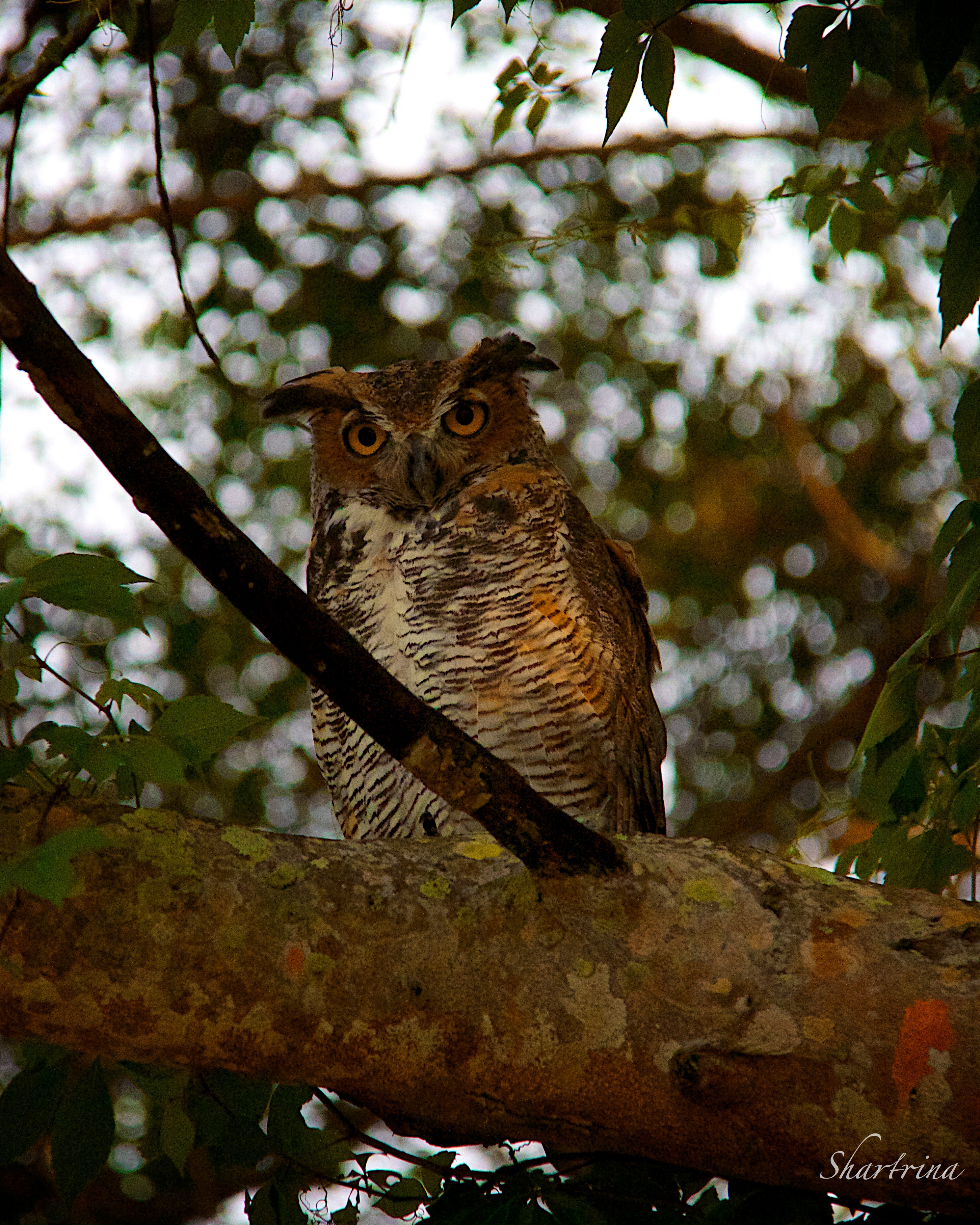This Owl was found in the same tree as the Red Tailed Hawk in my blog a couple of days ago; “It has long been believed that the Owl and the Hawk are closely connected and enjoy a symbiotic relationship. Each has dominion over a territory and share that realm, the Hawk akin to the Sun god Apollo who rules the day, with the Owl the counterpart of the Moon goddess Artemis who rules the night. In fact, most owls are nocturnal (meaning they are awake and active during the night) and Hawks are diurnal (active during daylight), so this mythological correlation is not far from reality.