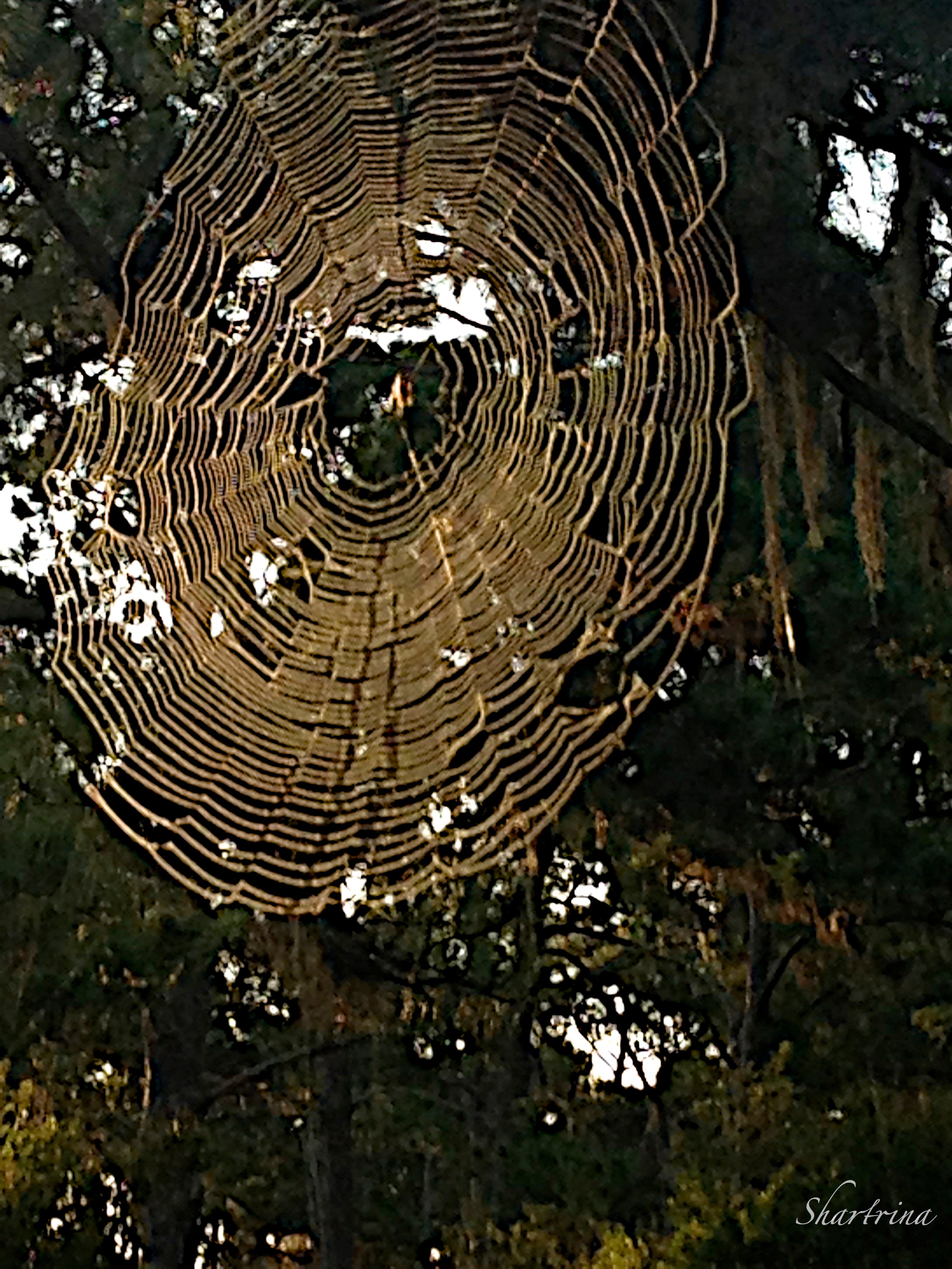 Shartrina, I totally get this! There is this web in our back yard that I inevitably walk through while I am walking our dog. And yet, there is this beautiful web near our garage door that I cannot bear to sweep away for fear some spider has worked so hard to make it.